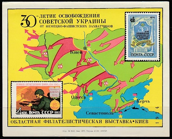 Сувенирный листок. Областная филвыставка. 30 лет освобождению Украины от фашистов, Киев, 1974 год.
