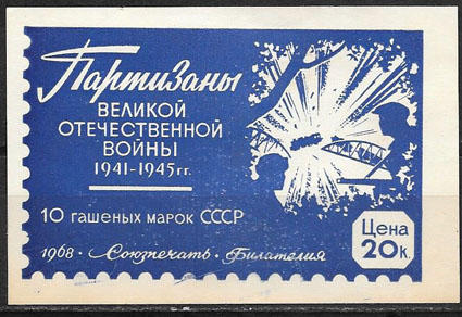 Сувенирный листок от набора марок. Партизаны ВОВ, 1968 г. (20к