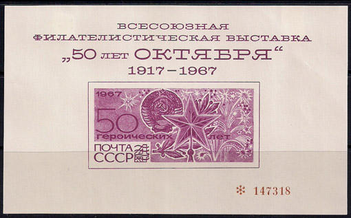 Сувенирный листок. Всесоюзная филвыставка 50 лет Октября, 1967 г. Следы от клея