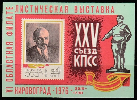 Сувенирный листок. XXV съезд КПСС. VI Областная филвыставка, Кировоград, 1976 год (зелёный)