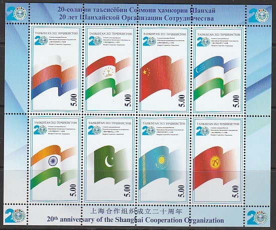 Таджикистан 2021 год. 20 лет Шанхайской Организации Сотрудничества, малый лист (н