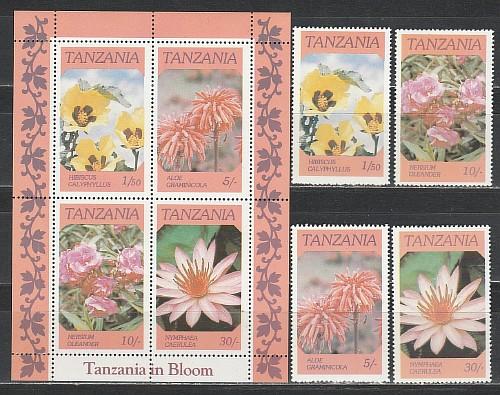 Танзания 1986, Цветы, 4 марки + блок