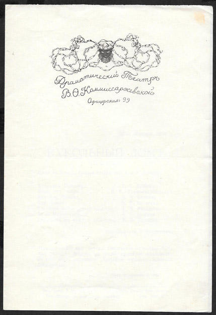 Театральная программка. Театр Коммиссаржевской. Кукольный дом. 1907 год