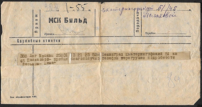Телеграмма, МКС Бильд, 1945 год