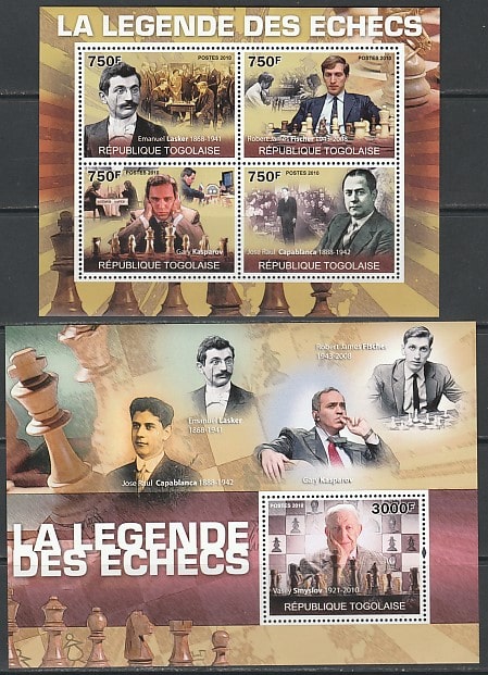 Того 2010 год. Легендарные шахматисты, малый лист + блок
