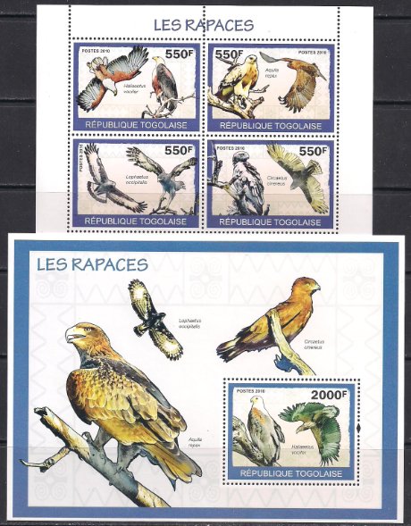 Того 2010 год. Орлы. Малый лист + Блок 16.5м