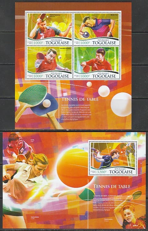 Того 2015 год. Настольный теннис. Спортсмены, малый лист + блок.