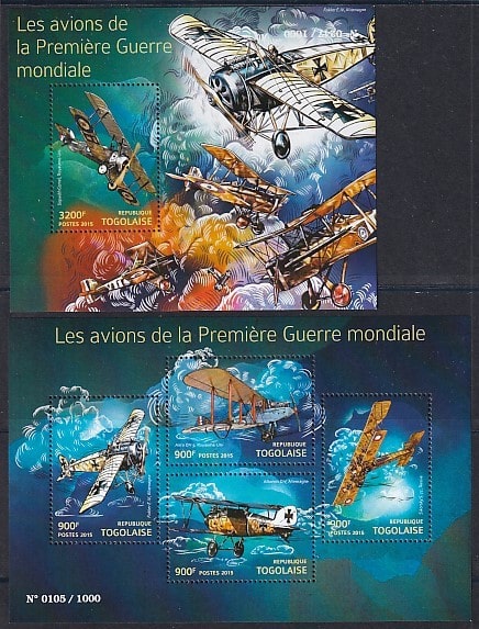 Того 2015 год. Самолеты Первой мировой войны, малый лист + блок