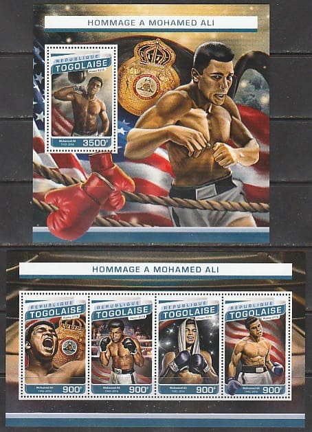 Того 2016 год. Американский боксёр - профессионал Мухаммед Али, малый лист + блок.