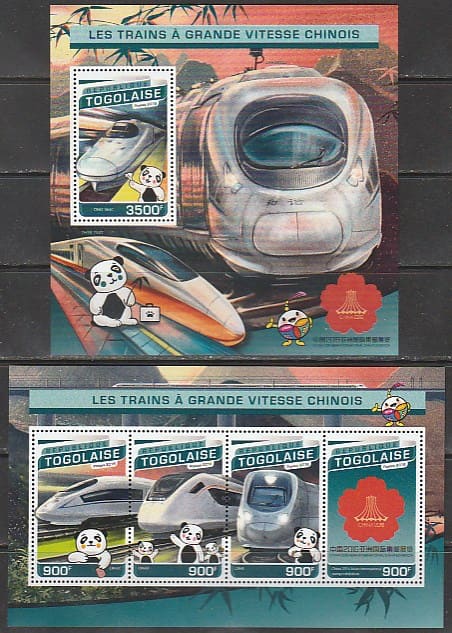 Того 2016 год. Высокоскоростные поезда Китая, малый лист + блок.