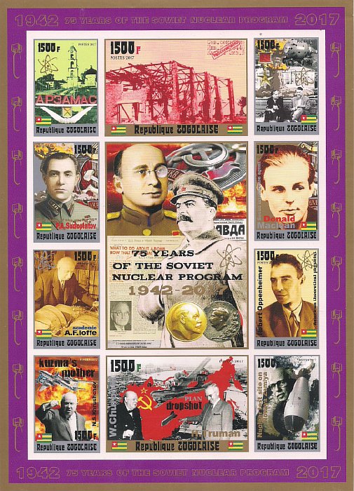 Того 2017 год. 75 лет советской ядерной программе. Лист Сувенирный выпуск