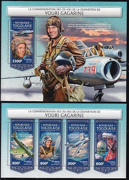 Того 2018 год. Юрий Гагарин, малый лист + блок