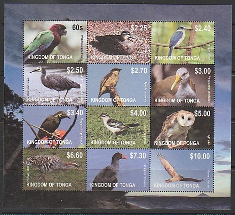 Тонга 2012 год. Стандарт. Птицы, малый лист (н