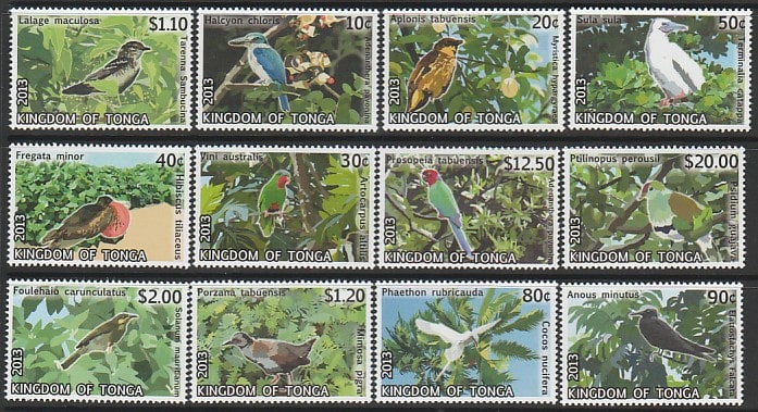 Тонга 2013 год. Стандарт. Птицы, 12 марок (н