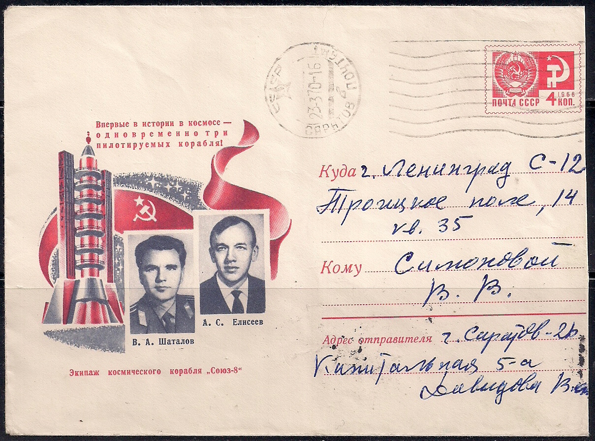 Три ХМК. Впервые в истории в космосе - одновременно три пилотируемых корабля! 21.10.1968 год, № 68-653, 654, 655, прошли почту