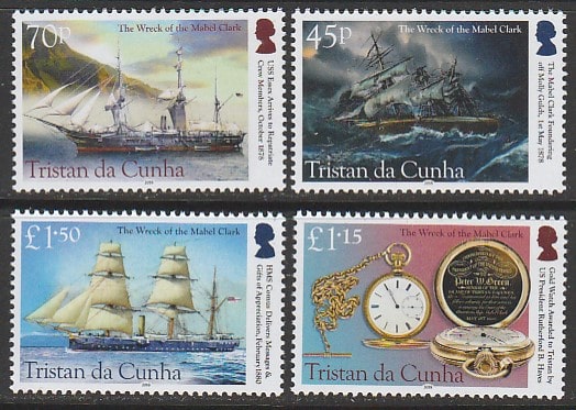 Тристан-да-Кунья 2018 год. Парусники. Кораблекрушения, 4 марки (357.1306