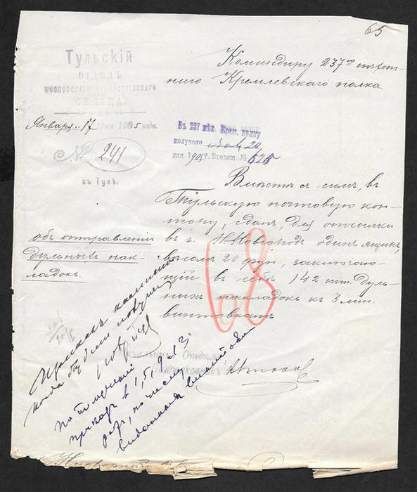Тульский отдел московского артиллерийского склада. В 237 Кремлевский полк. 17 января 1905 г.