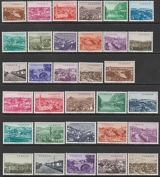 Турция 1958 год. Города (I/II), 32 марки.
