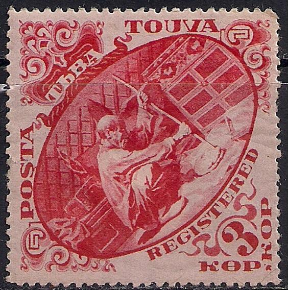 Тува 1933 год. Мукомол. 1 марка с наклейкой