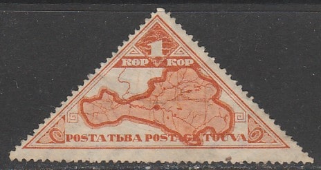Тува 1935 год. Природа Тувы. Карта ТНР, 1 коп., 1 марка (наклейка) (б/клея)