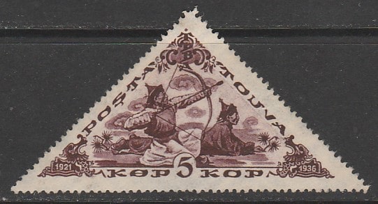 Тува 1936 год. Стрельба из лука, 1 марка (ном. 5 коп.) (б/клея)