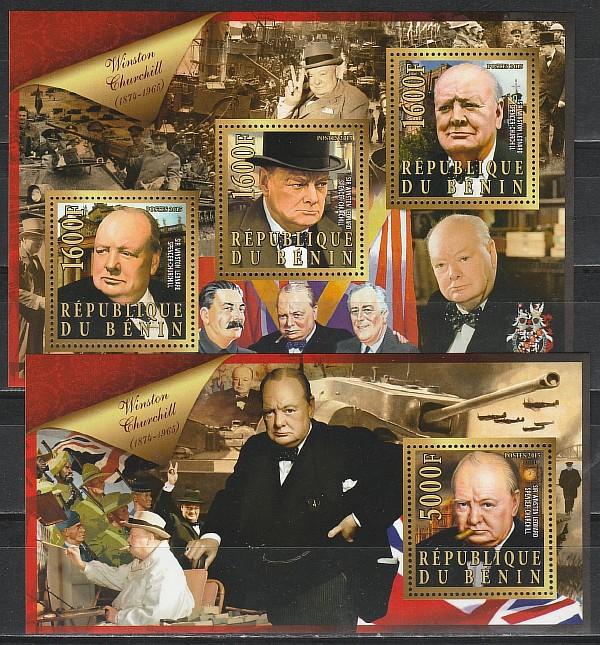 У. Черчилль, Бенин 2015 г, 1 малый лист и 1 блок