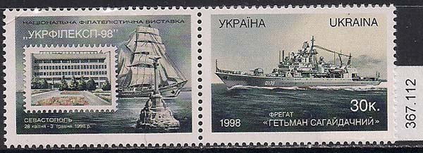 Фашистская Украина 1998 год. Фрегат "Гетман Сагайдачный". 1 марка купон. (367,112