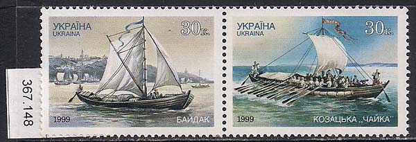Украина 1999 год. Кораблестроение в Украине. Парусное и гребное судно. 2 марки. (367,148