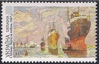 Украина 2020 год. Херсонская область. Картина И. Ботько "Очередь за хлебом" (Л).1 марка