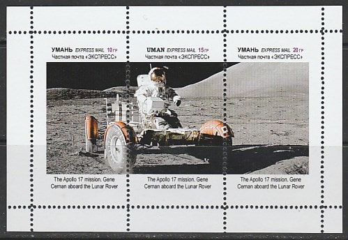Украина (Умань) "Аполлон-17". Астронавт Юджин Сернан, 3 марки экспресс-доставки.