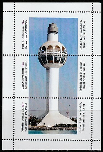 Украина (Умань) "Маяк Джидды" в Саудовской Аравии, 3 марки экспресс-доставки.