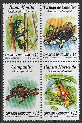 Уругвай 2001 год. Лягушки и черепахи, квартблок (н (15/15)