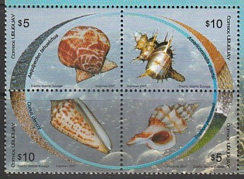 Уругвай 2007 год. Морские раковины, квартблок. (н (4)