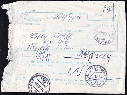 Уведомление о вручении почтового отправления с маркой, 1991 год
