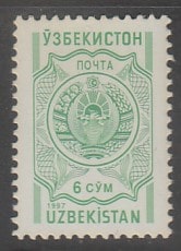 Узбекистан 1997 год. Стандарт. Государственный герб, 1 марка.