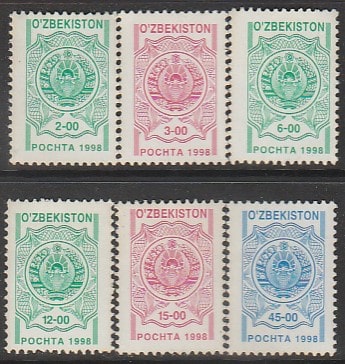 Узбекистан 1998 год. Стандарт. Государственный герб, 6 марок. (6)