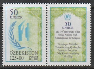 Узбекистан 2000 год. 50 лет Управлению верховного комиссара ООН по делам беженцев, 1 марка с купоном.