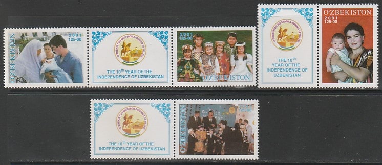 Узбекистан 2001 год. 10 лет Независимости. Дети, 4 марки с купонами.