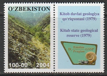 Узбекистан 2004 год. 25 лет Китабскому геологическому заповеднику, 1 марка с купоном. (1,4)