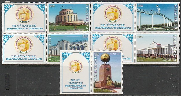 Узбекистан 2006 год. 15 лет Независимости. Архитектура, 5 марок с купонами. (9,5)