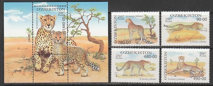 Узбекистан 2007 год. Гепард, 4 марки + блок