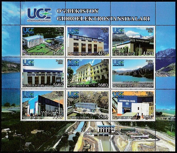Узбекистан 2021 год. Гидроэлектростанции, малый лист (н
