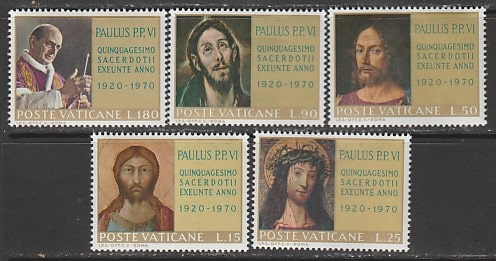 Ватикан 1970 год. 50 Юбилей Папы Павла VI. Картины, 5 марок