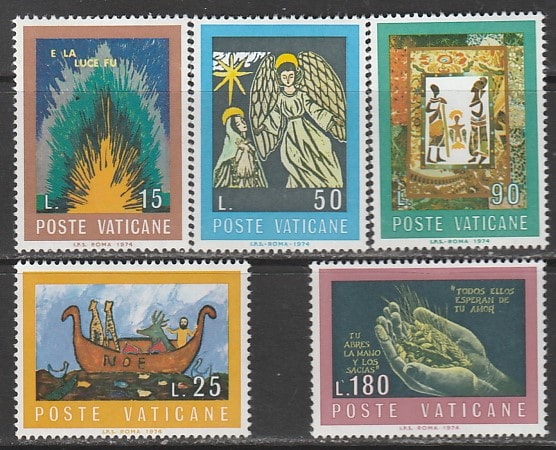 Ватикан 1974 год. Конкурс рисунков подростков "Библия", 5 марок