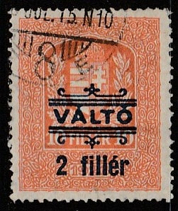 Венгрия 1926 год. Государственный герб. НДП, ном. 2/10 f, 1 гербовая марка (гашёная)