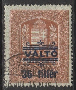 Венгрия 1926 год. Государственный герб. НДП, ном. 36/40 f, 1 гербовая марка (гашёная)