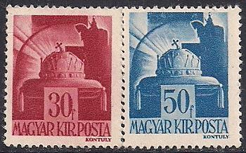 Венгрия 1942 год. Корона Стефана Блуаского. 2 марки с наклейкой