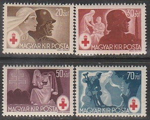 Венгрия 1944 год. Красный крест. Военные и сестры милосердия, 4 марки (наклейка)