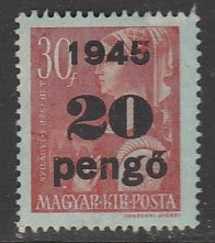 Венгрия 1945 год. Стандарт. Елизавета Венгерская, НДП, 20 Р/30 f, 1 марка из серии (наклейка) (1 из 43)
