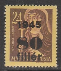 Венгрия 1945 год. Стандарт. Святая Маргарита Венгерская, НДП, 80 f/24 f, 1 марка из серии (наклейка) (1 из 43)